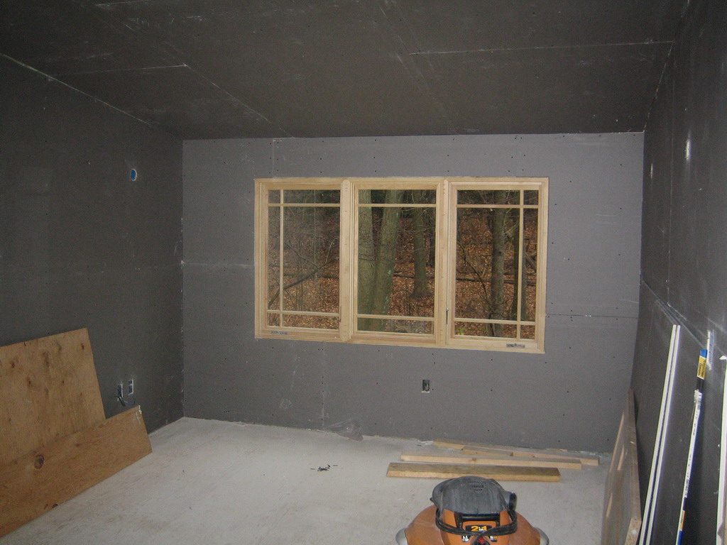 (in the closet), and did some additional air sealing. On Wednesday, the blueboard was installed. On Thursday,